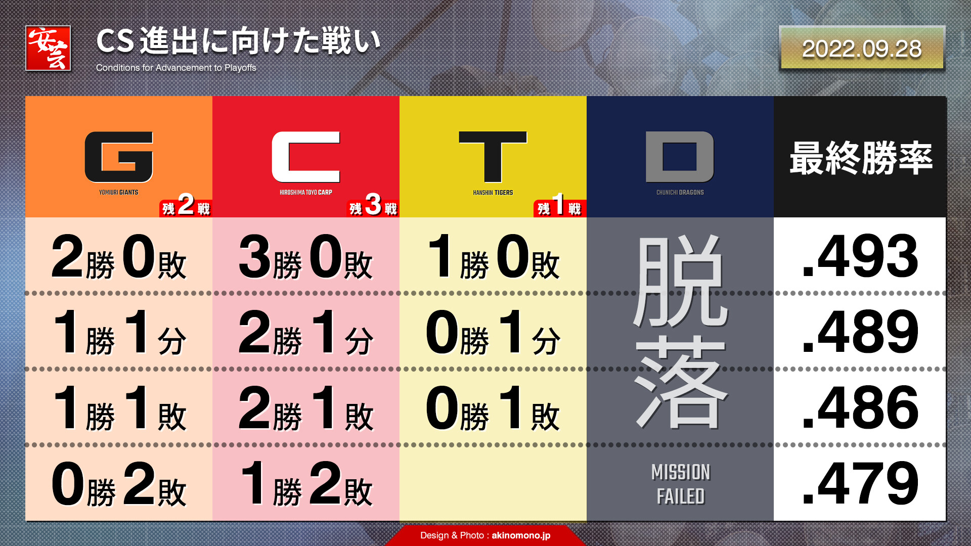 巨人広島阪神のCS権争い、流石に阪神が取りそう