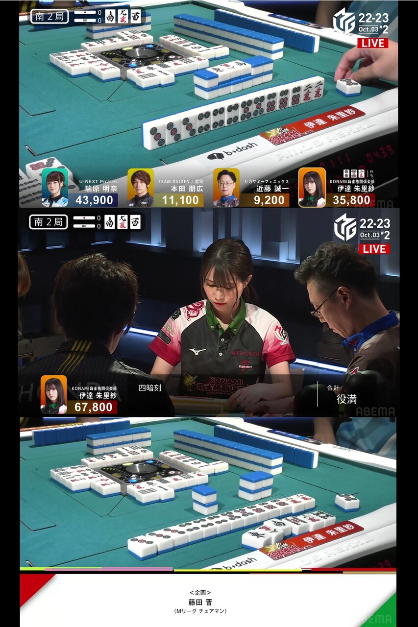ローカルだったらダブル役満!伊達朱里紗、今期1号の役満・四暗刻は激レア「四連刻」ファンから驚きのコメント続出/麻雀・Mリーグ