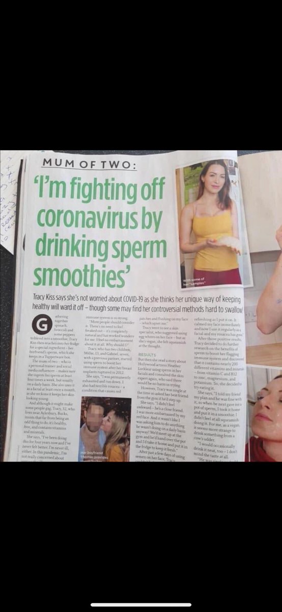 I’m fighting off coronavirus by drinking sperm smoothies.