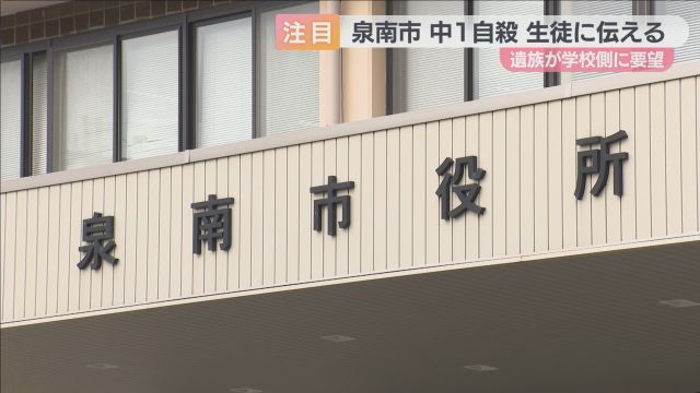 大阪府泉南市で今年3月、中学1年(当時)の生徒が自殺したことについて半年以上が経過した29日、学校側が初めて遺族が要望していた在校生への説明会を開きました。