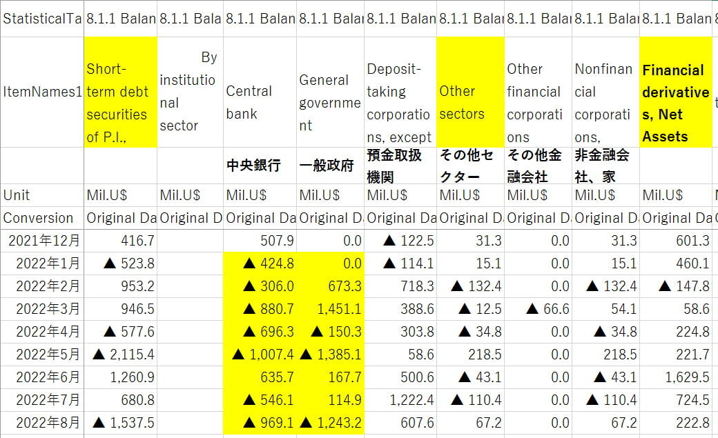 さらに面白いのは、「短期債券」(Short-term debt securities)の部です。以下をご覧ください。