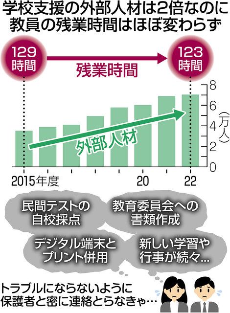 小中学校、残業が減らない…「外部人材を倍増したのに」月間123時間