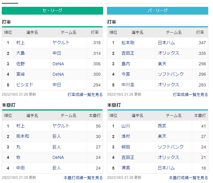 各球団30本越えとか3割打者が最低1人くらいいるほうが面白いわ
