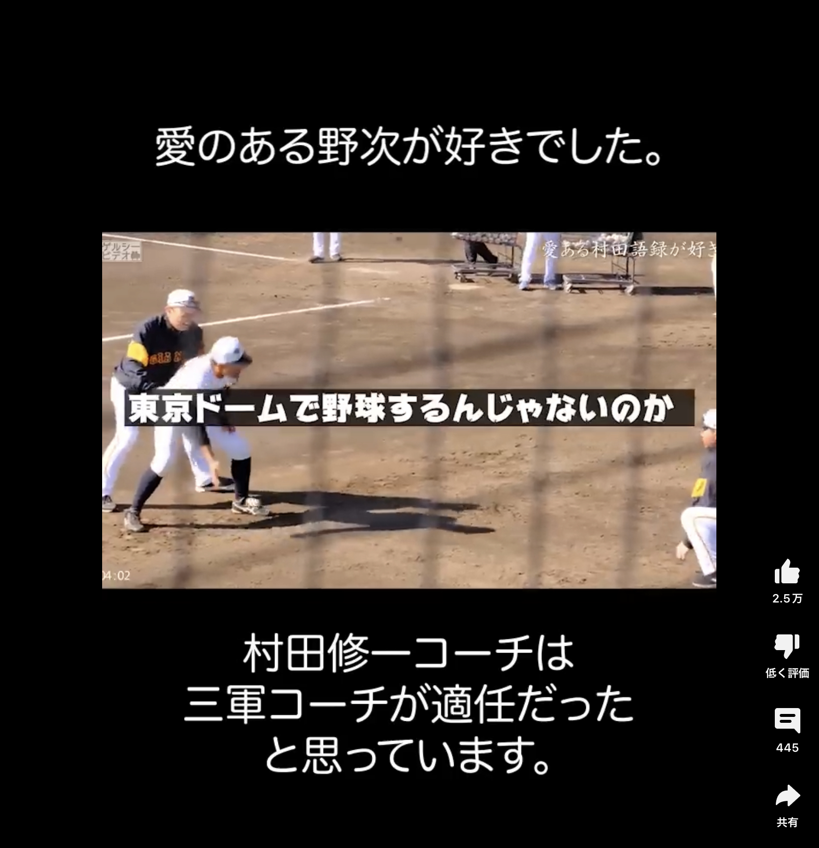 【動画】村田修ーコーチのヤジ、怖すぎる。。。。。。。。