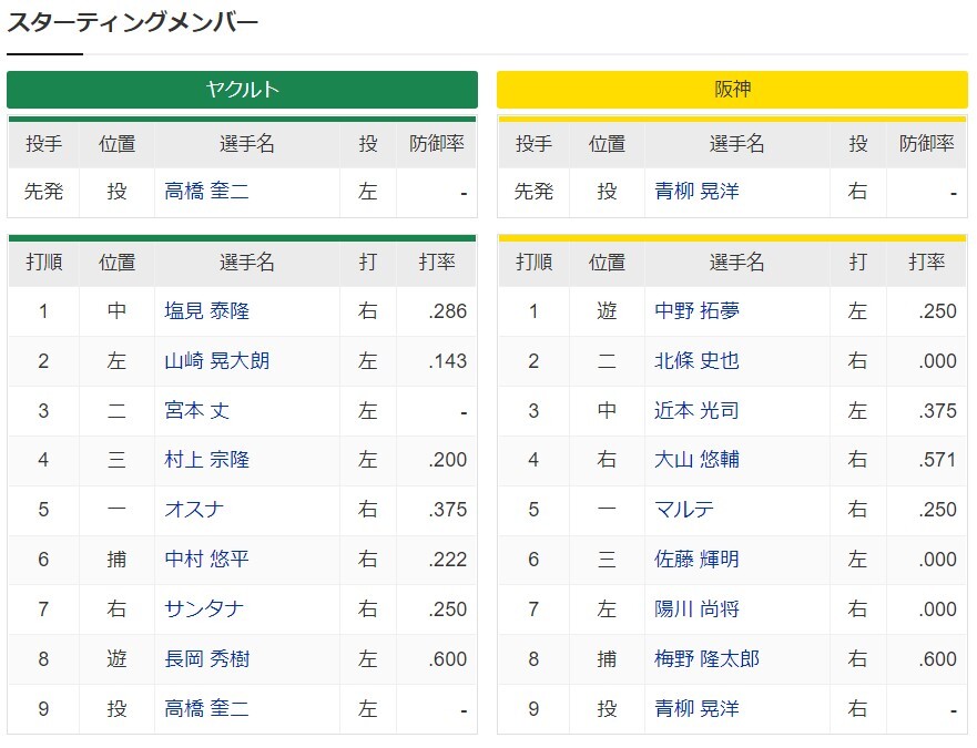 CSファイナル第3戦 ヤクルトー阪神 スタメン 神宮球場 2022/10/14