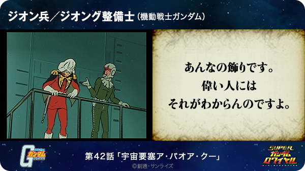 【ガンダム】シャア(大佐)「足はついてないようだが?」整備兵「あんなの飾りです。偉い人にはそれが分からんのですよ。」←これwww