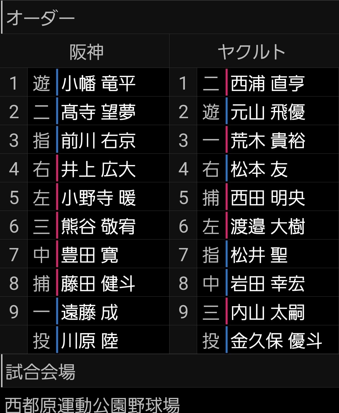 フェニックス・リーグ 阪神2軍 阪神ーヤクルト スタメン