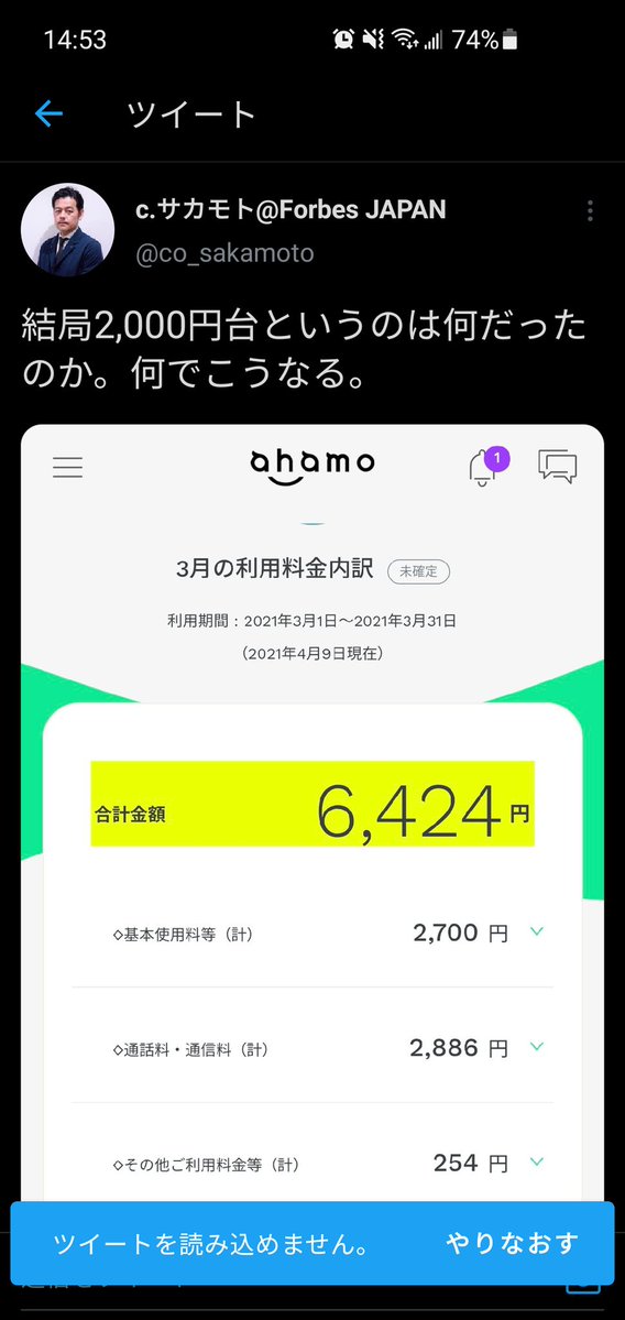 【釣りですか?】Forbes編集部がahamoに激怒 1時間以上の長電話し「2000円台とはなんだったのか」