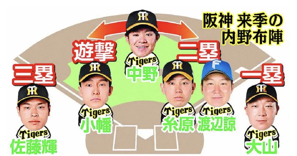 現状、遊撃は2年連続で100試合以上先発している中野と、強肩が持ち味で高い守備力を誇る小幡が軸になりそうだ。二塁は今季チーム最多の54試合でスタメン起用された糸原と、日本ハムでレギュラーを張った経験がある新加入の渡辺の起用が有力視される。他にも二塁では木浪、北條、山本といった中堅のほか、高寺、遠藤といった若手も控える。