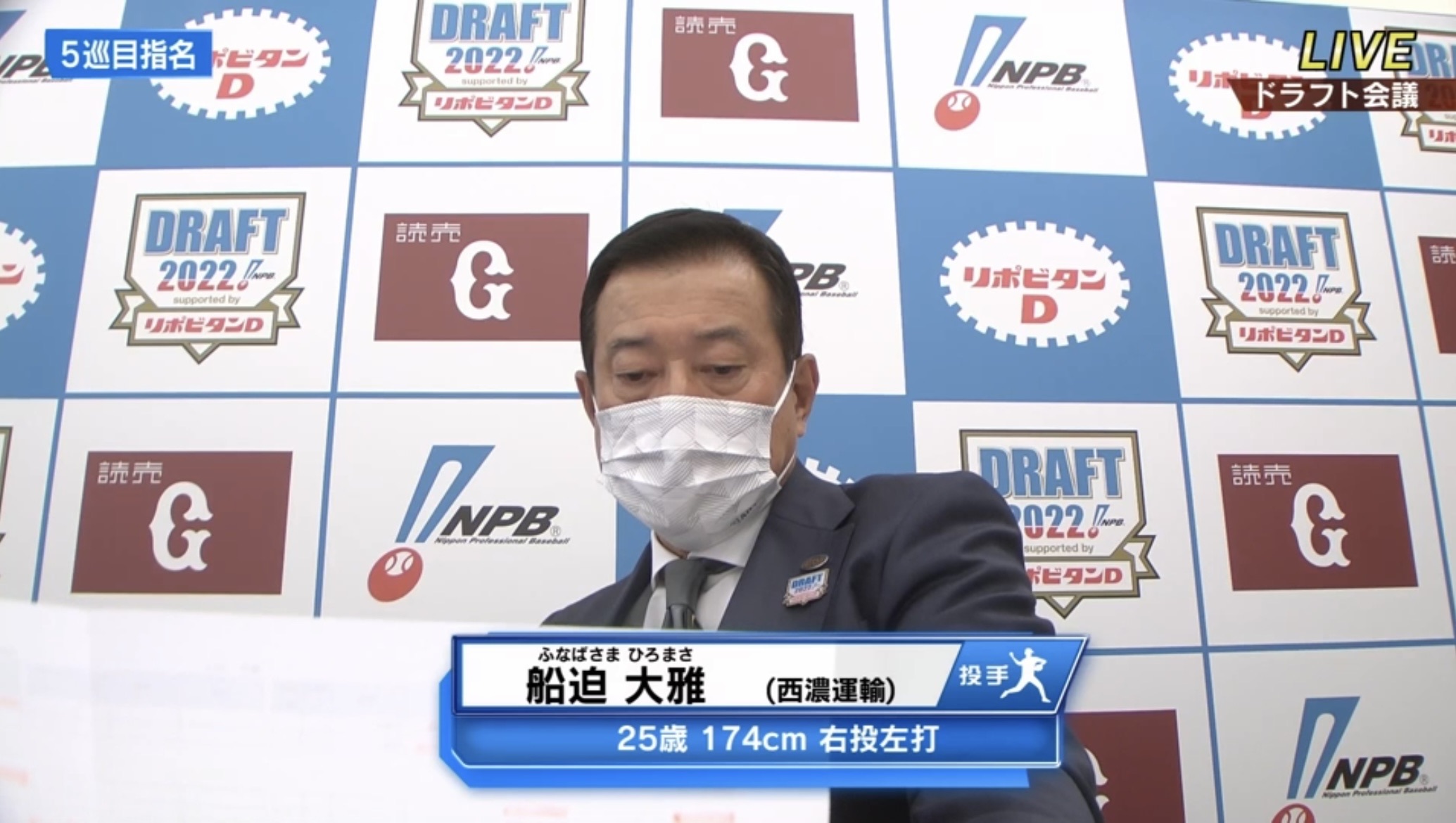 巨人、5位で船迫大雅を獲得で選択終了 神ドラフトやな!