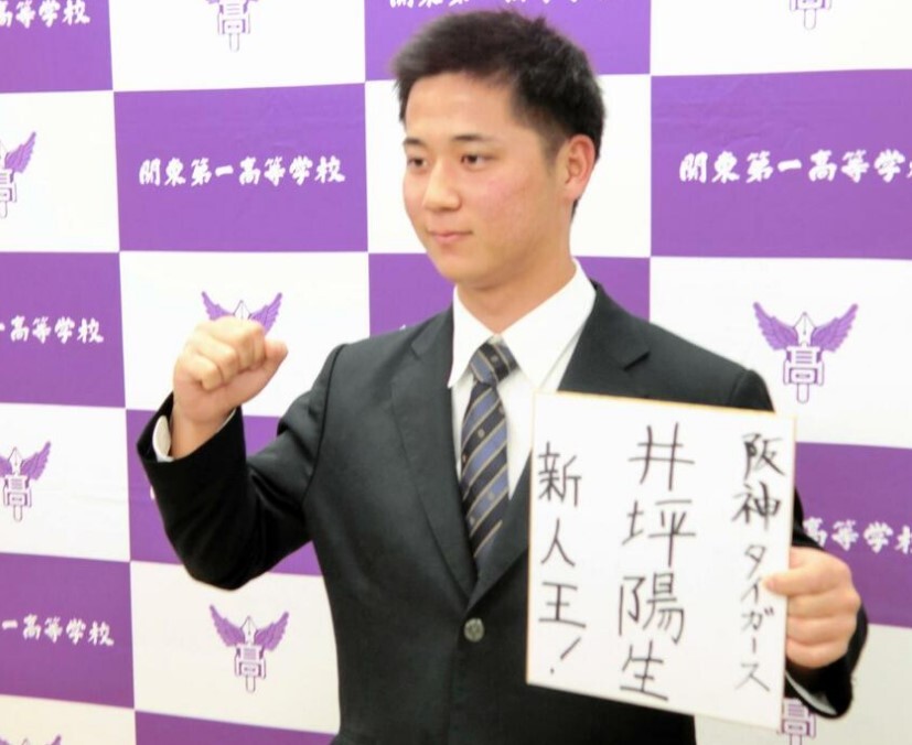 阪神に3位指名された井坪陽生外野手(17)=関東第一=は、名前が読み上げられた瞬間、大きく目を見開いた。仲間の祝福の歓声にも固まったまま。「ここまで早く呼ばれると思っていなかった。ビックリしました」と明かし「素直にうれしい」と喜んだ。