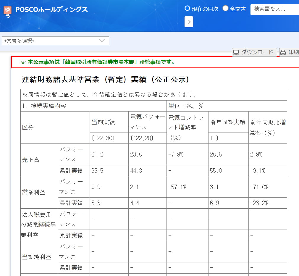 2022年10月18日、韓国鉄鋼メーカー最大手『POSCO(ポスコ)』が第3四半期の業績(暫定版)を公示しました。