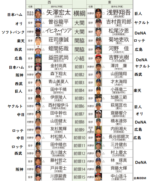 ベースボールマガジンのドラフト番付改めて見ると