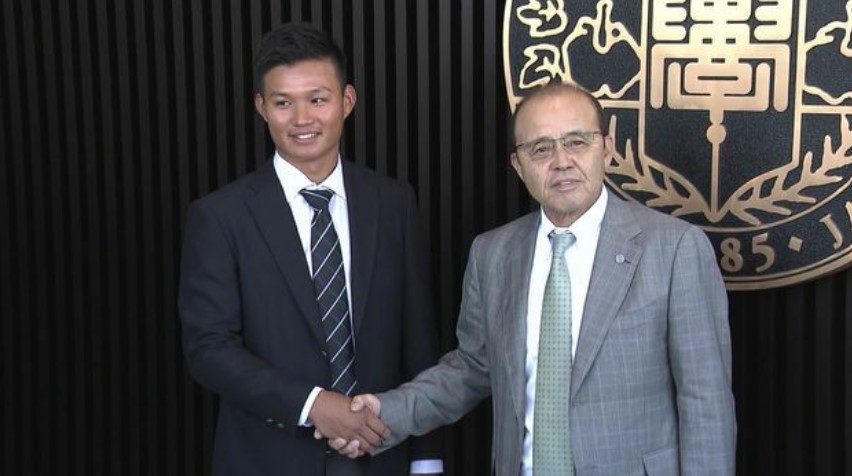 前日阪神にドラフト1位指名を受けた中央大学の森下翔太選手が21日、岡田彰布監督と初対面。