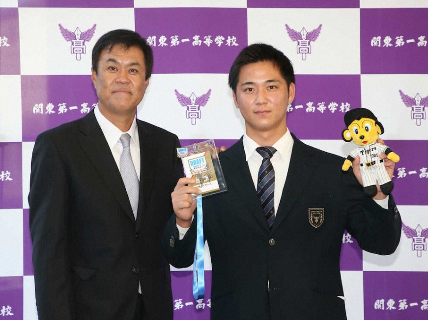 阪神からドラフト3位指名を受けた井坪陽生(ひなせ)外野手(17=関東一)が26日、東京都江戸川区内にある同校で畑山統括スカウト、平塚スカウトから指名あいさつを受け「指名の時はビックリして実感がわいてなかったんですけど、指名あいさつさせてもらってようやく(プロ野球選手としての)実感がわいてきた」と淡々と話した。
