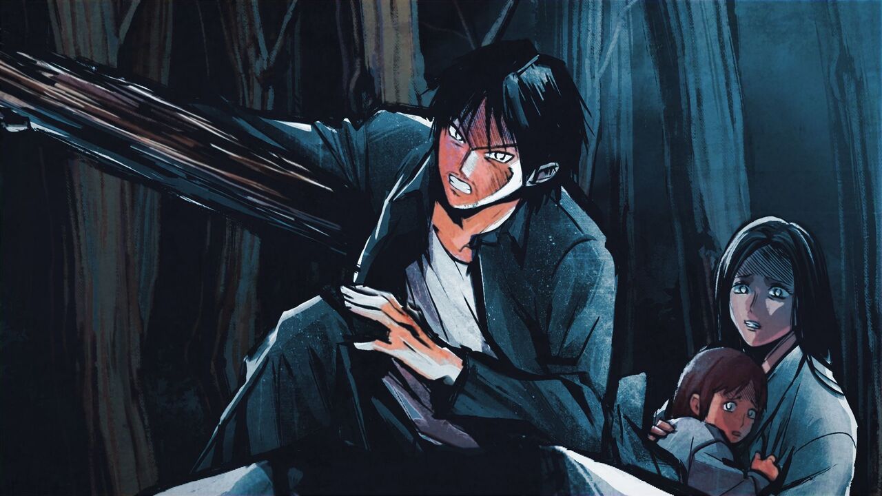 「漫道コバヤシ」で指摘された「明が義手の右手で刀持って斬ってますよ」のシーンです😅