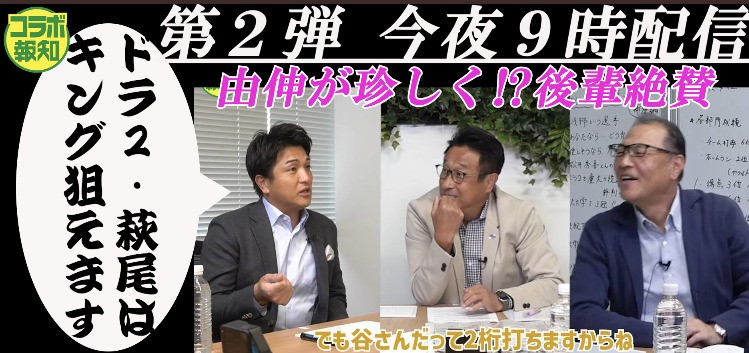 スポーツ報知 巨人取材班@hochi_giants大好評の評論家座談会は早くも第2弾。 #報知プロ野球チャンネル より今夜9時に配信します。今回はドラフト2位指名の萩尾匡也選手~同5位の船迫大雅投手に迫ります。チャンネル登録してお待ちください。
