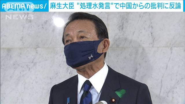 麻生財務大臣は福島第一原発の処理水をめぐる自らの発言に対し、中国から批判の声が出たことについて、「中国の報道官って人でしたっけね、『太平洋は日本の下水道ではない』って中国の下水道なの?みんなの海じゃないのかねと思うね」と反論した。