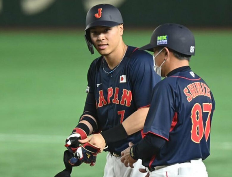 佐藤輝は4回に廣岡の大飛球を好捕。さらに2死二塁で保科が放った右前打を捕球し、本塁へワンバウンドで好返球し、アウトにした。そして7回には無死三塁で代表初安打となる右前適時打。「正直ほっとしました。打点もついて嬉しかったです」と振り返った。