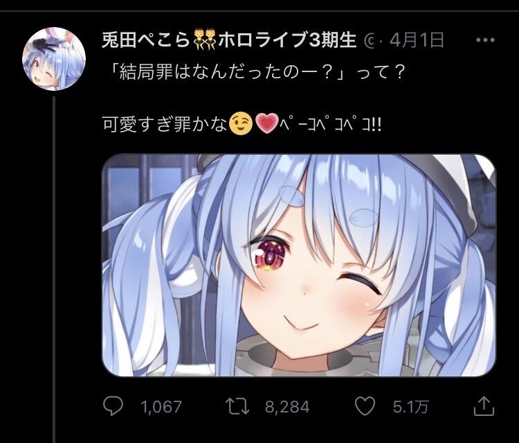 【画像】兎田ぺこらちゃん「可愛すぎ罪かな😉❤ペーコペコペコ!!」