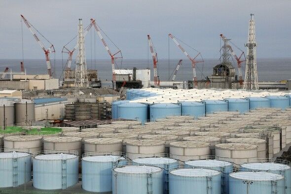 ▲日本の福島第一原発の敷地に建てられている2011年の原子力発電所事故による汚染水の貯蔵タンク。日本政府は最近、この中に保管されている125万トンの汚染水を海洋に放出することを決めた/聯合ニュース