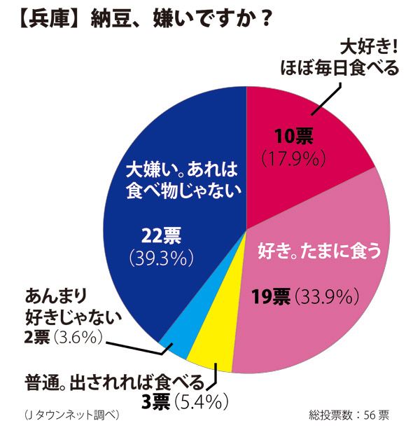 納豆総合情報サイト・全国納豆協同組合連合会納豆PRセンターが2021年6月に公表した「納豆に関する調査」の調査結果報告書によると、「納豆を全く食べない」という回答が中国地方と四国地方で22.1%と最も多く、次いで近畿地方が17.4%、九州地方が13.8%だった。一方で東北地方は5.0%、関東地方は7.9%、北海道が8.1%と、近畿や九州に比べて低く、納豆好きが比較的多いという結果だった。