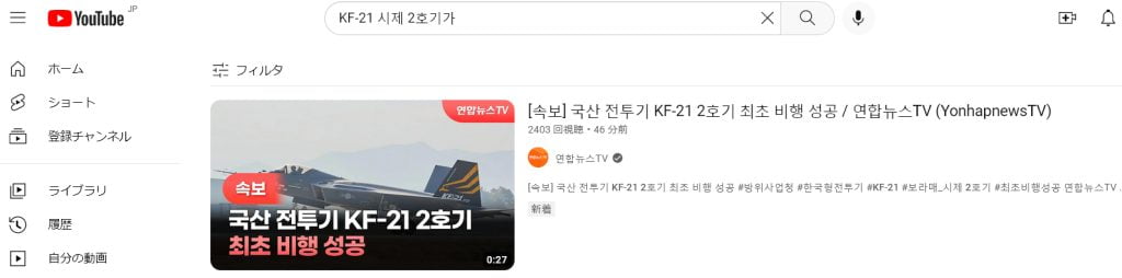 ↑現時点で防衛事業庁が写真を提供してくれないので『聯合ニュース』YouTubeチャネルのサムネイル。2号機は垂直尾翼が黒字に塗装されており、羽(?)の意匠ラインが黄色です。