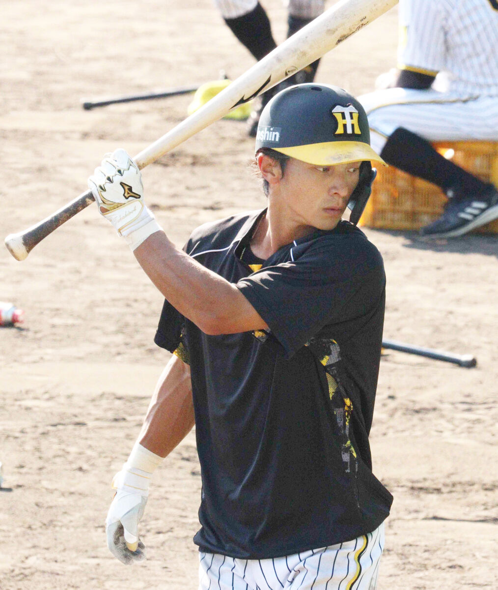 阪神の熊谷敬宥内野手が10日、高知・安芸キャンプで岡田彰布監督から直接指導を受けた。