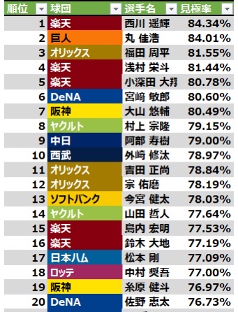 【選球眼】2022年度、ボール球見極め率ラキングンWWWWWWWWWWWWWWWW