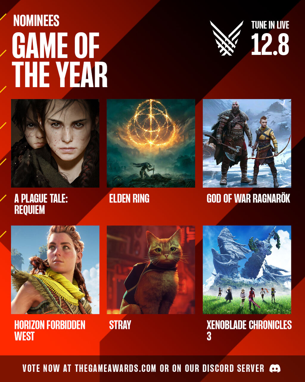 今年一番面白かったゲームを決めるGOTY、ノミネート作品が発表
