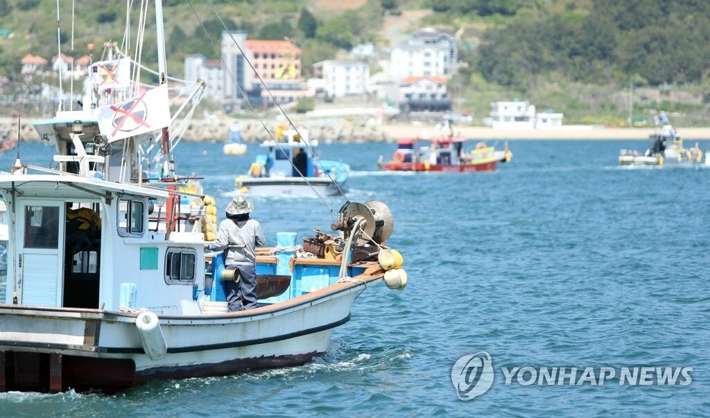 韓国南部、慶尚南道・巨済の漁師たちが、日本政府による東京電力福島第1原発の処理済み汚染水の海洋放出決定に抗議する海上デモを行った=19日、巨済(聯合ニュース)