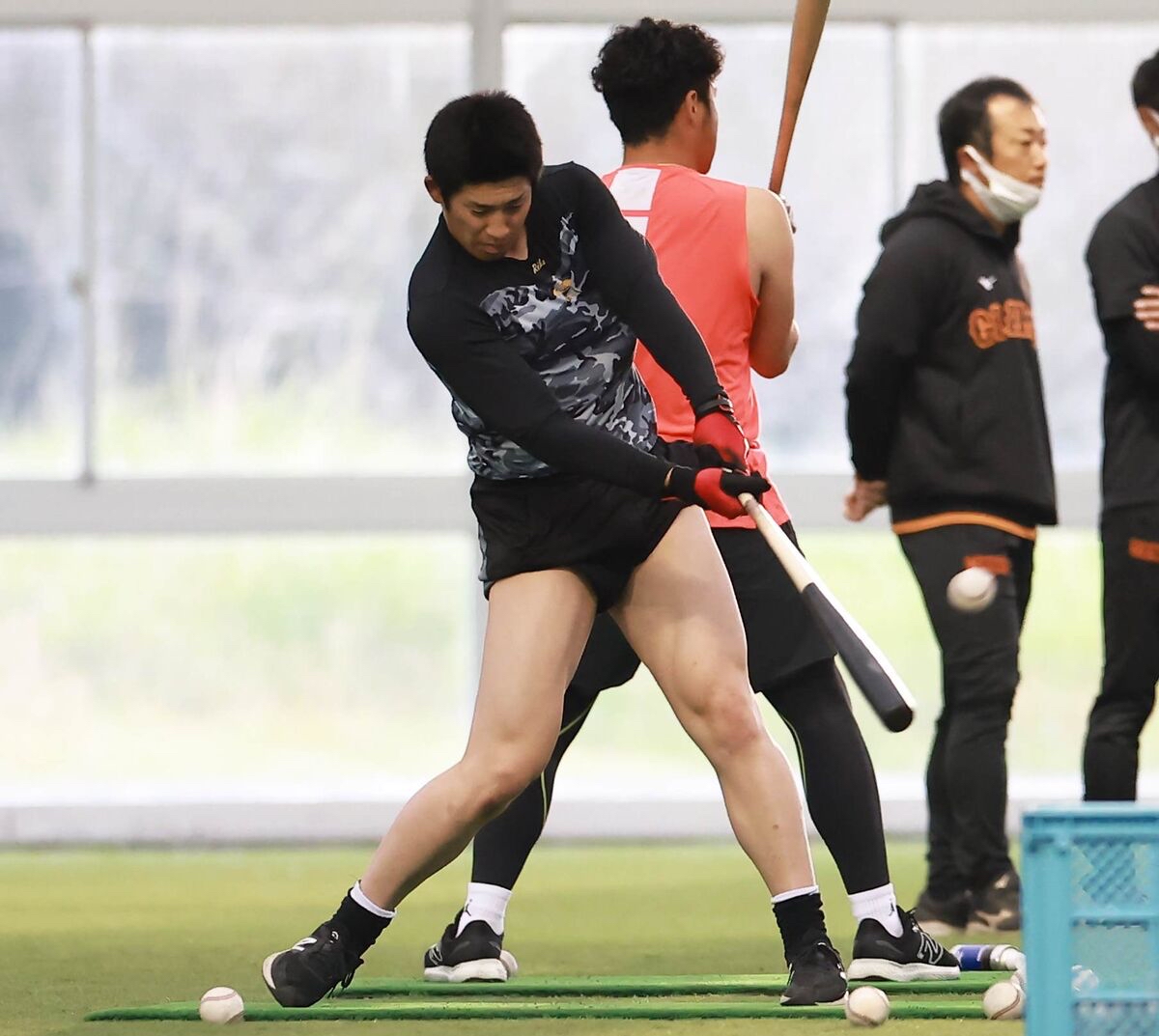 【画像】巨人・増田陸、とんでもない格好でバッティングをする