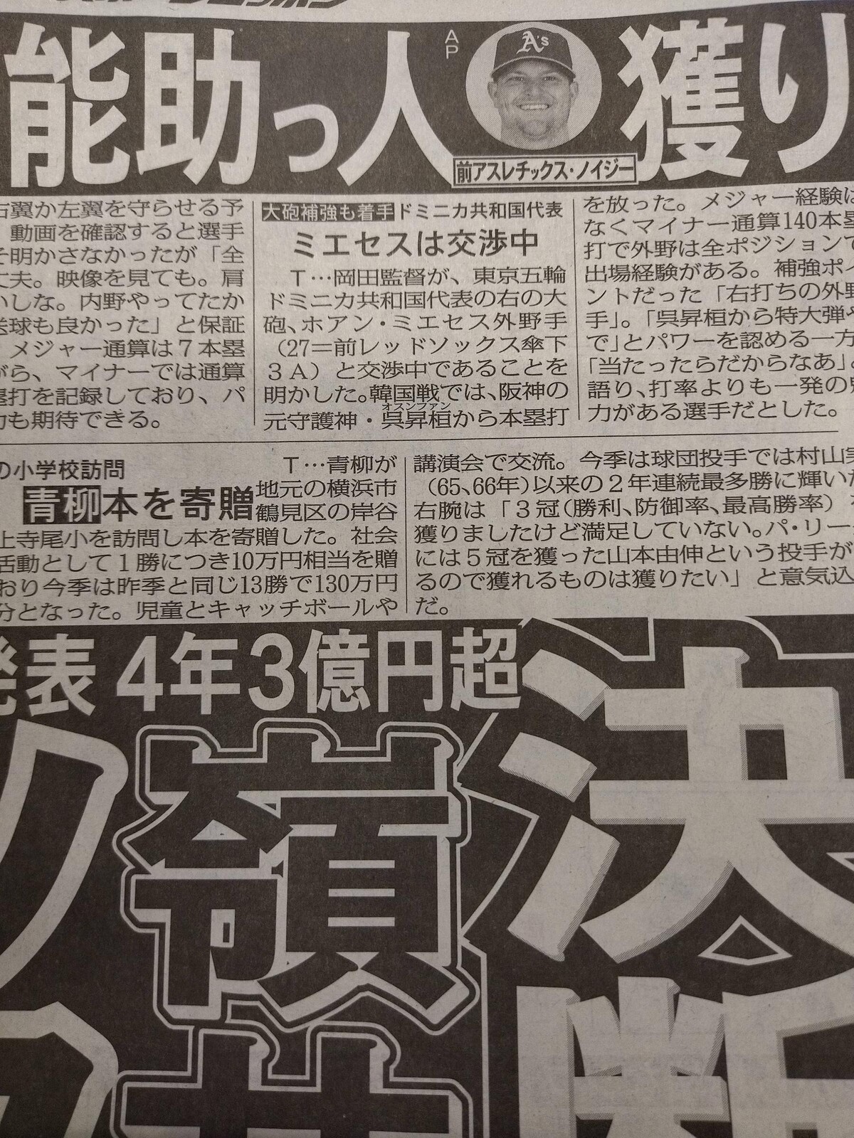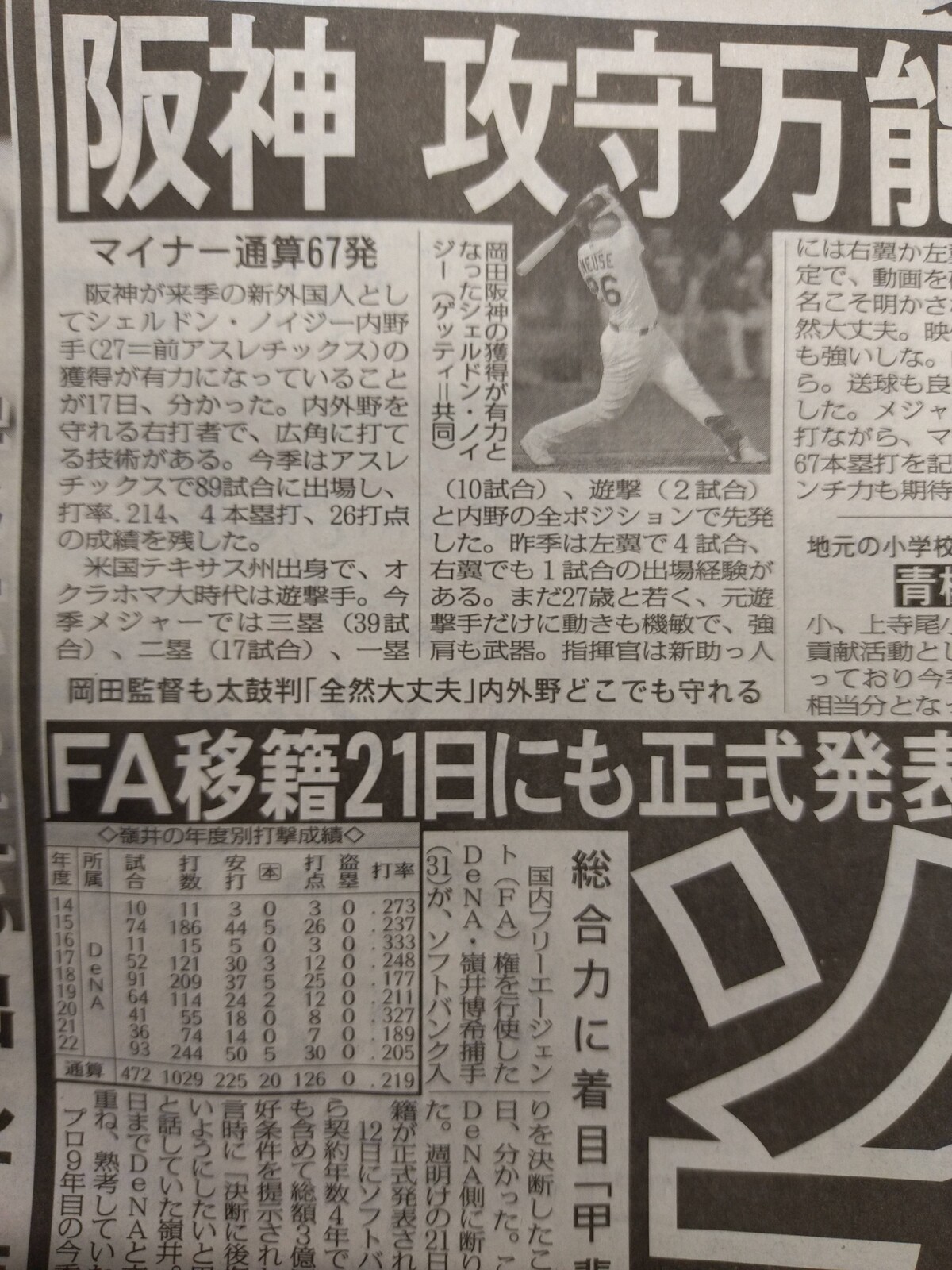 阪神新助っ人ノイジー獲り 岡田監督「ええバッターや」左翼本命 「押さえ的なあれ」も獲得へ