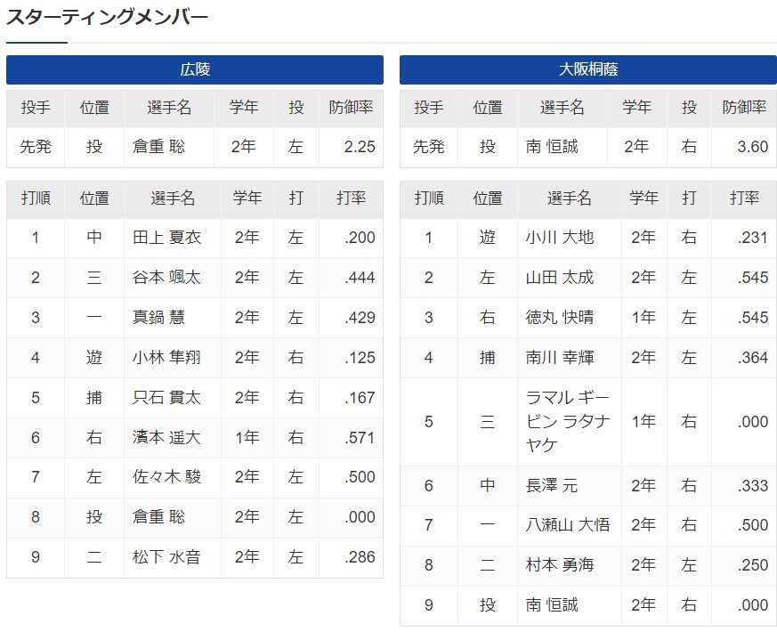 神宮大会 決勝 大阪桐蔭vs広陵 高校野球