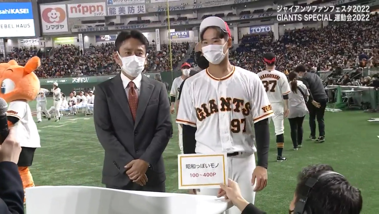 【悲報】巨人井上、借り物競争で昭和っぽい物のお題で蛯原アナウンサーを連れてきてしまう