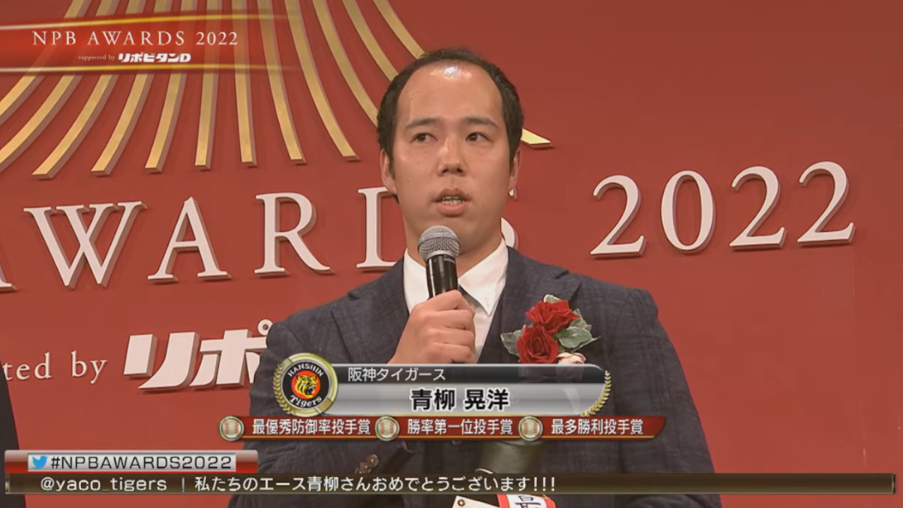 阪神・青柳が投手3冠で表彰「また来年ここに立てるように」/阪神タイガース/デイリースポーツ online https://www.daily.co.jp/tigers/2022/11/25/0015838971.shtml … @Daily_Onlineより