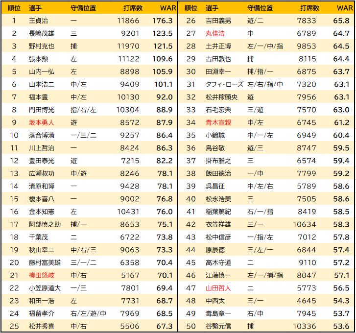 【朗報】坂本勇人さん、歴代トップ10に入る名選手だったwww