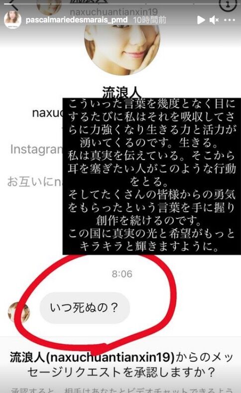 「こういった言葉を幾度となく目にするたびに私はそれを吸収してさらに力強くなり生きる力と活力が湧いてくるのです。生きる。」と誹謗中傷について反応。