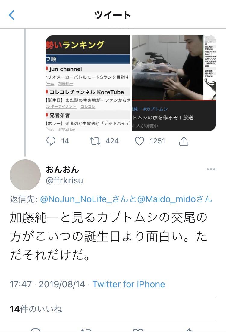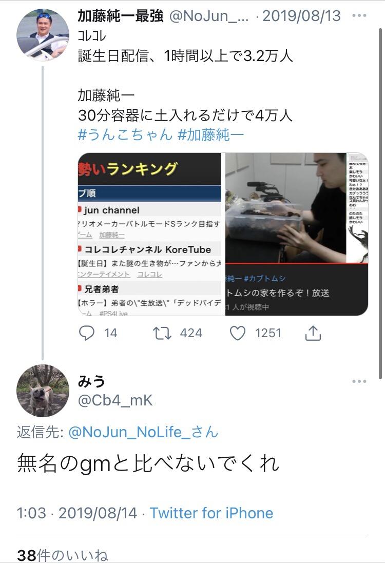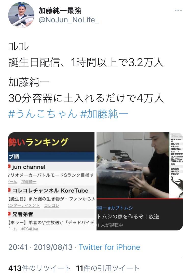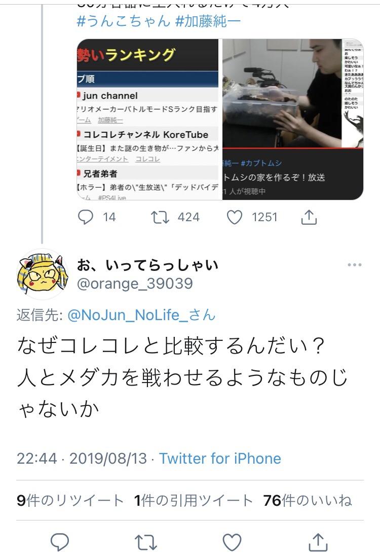 【画像】加藤純一信者「なぜコレコレと比較するんだい?人とメダカを戦わせるようなものじゃないか」