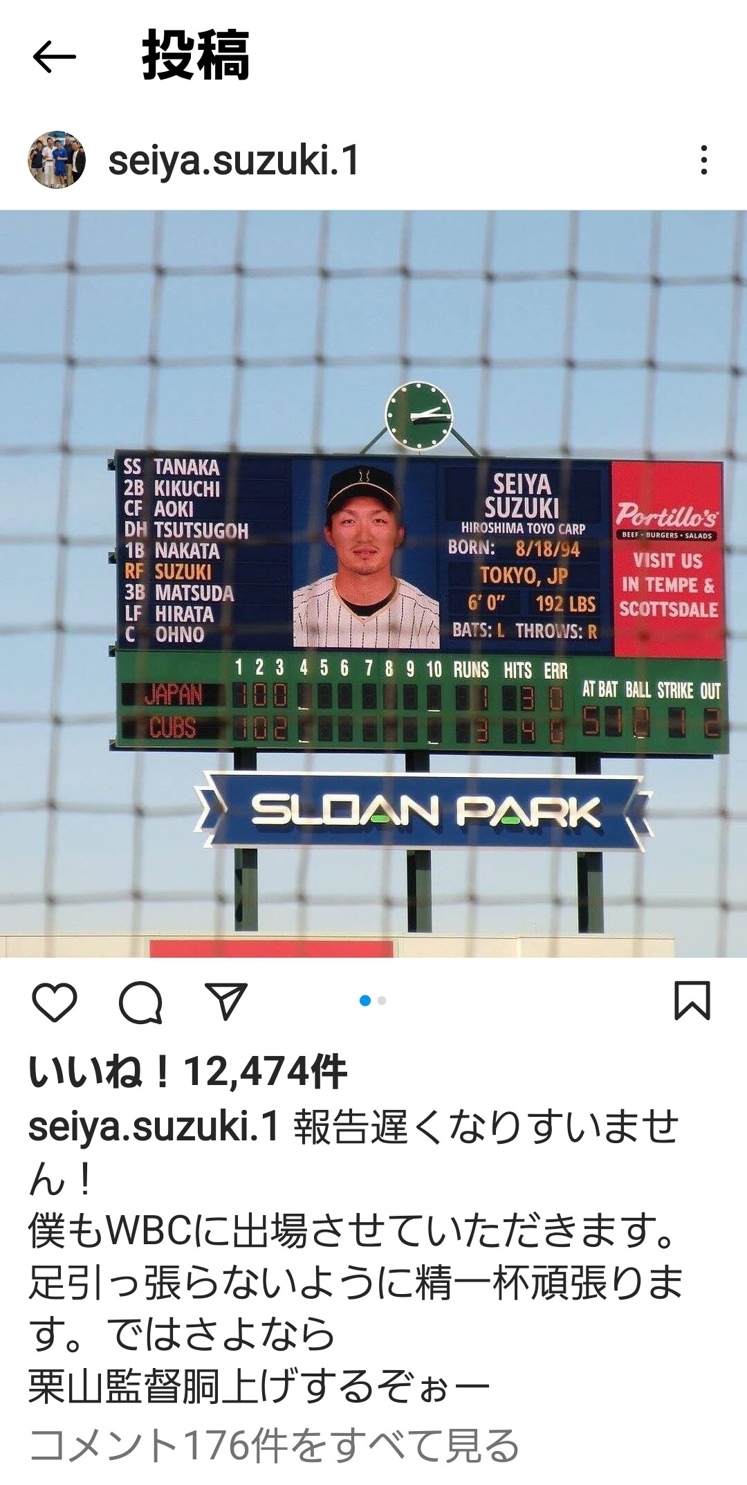 View this post on Instagram A post shared by 鈴木誠也 (@seiya.suzuki.1)