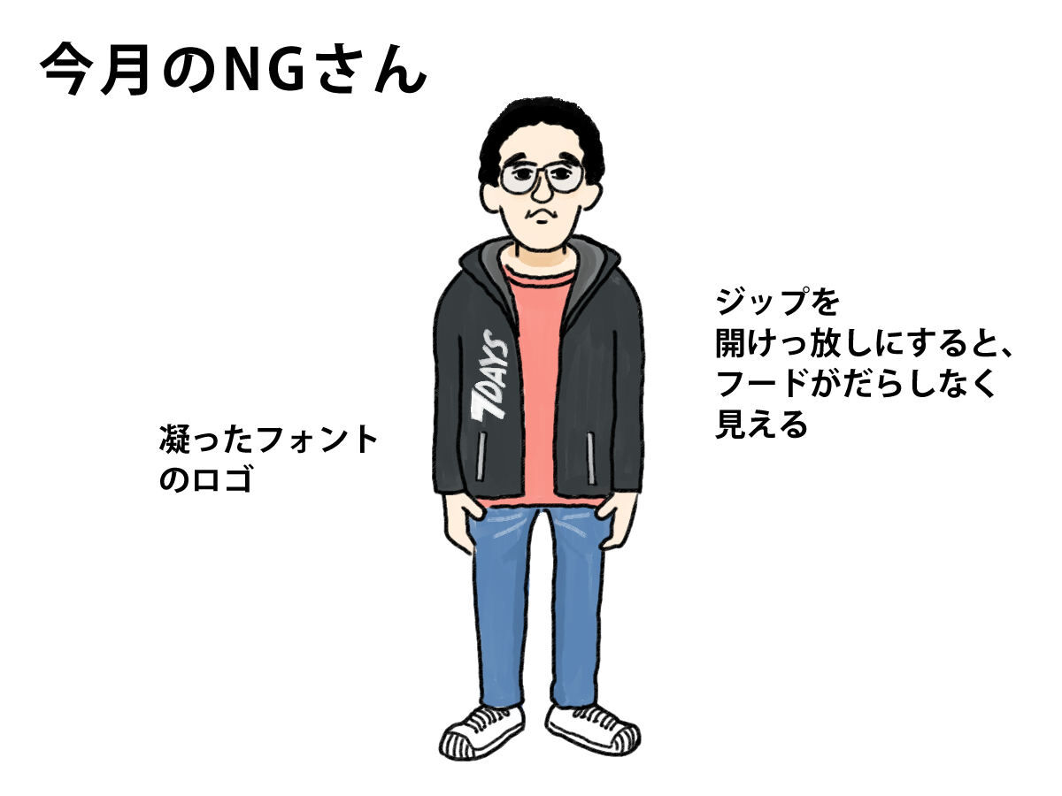 フルジップパーカー姿の「ダサい、生活感」を感じさせない工夫