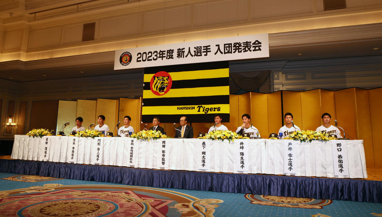 阪神は12日、大阪市内のホテルで新入団選手発表会見を行い、各選手の背番号を発表した。