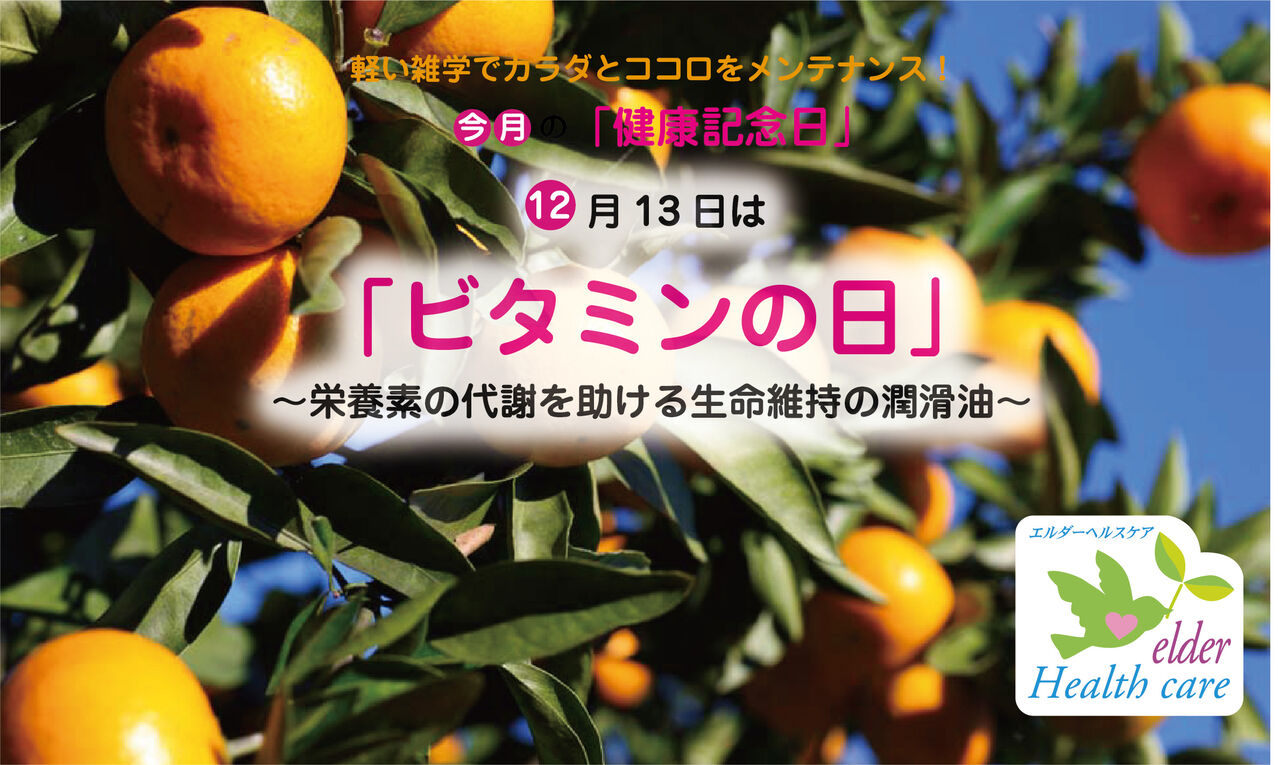 12月13日はビタミンの日「食」の三択コラム …」との思いから、郷里・静岡県の有志を中心に『ビタミンの日』制定委員会が発足し、12月13日が『ビタミンの日』として制定されました。 「ビタミン」の意味… (出典:おとなの週末) |