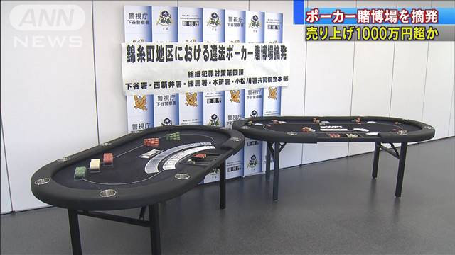 東京・墨田区のマンションで客にポーカー賭博をさせたとして、経営者の男が現行犯逮捕されました。