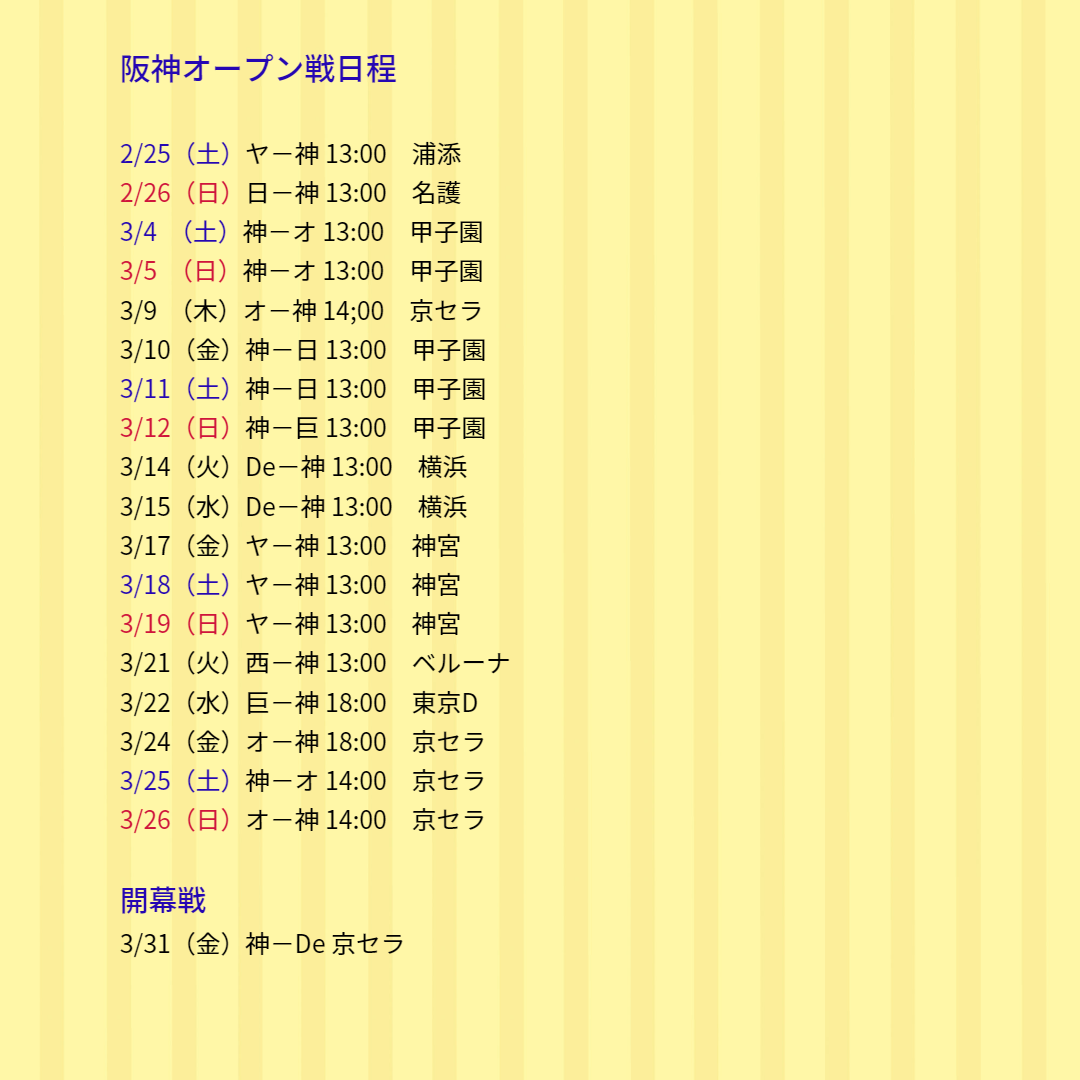 2023年度 プロ野球オープン戦 試合日程発表(阪神)