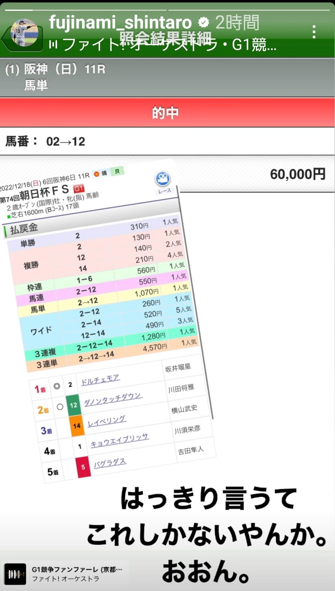 藤浪晋太郎さんインスタストーリーhttps://www.instagram.com/stories/fujinami_shintaro/2995801854141442406/