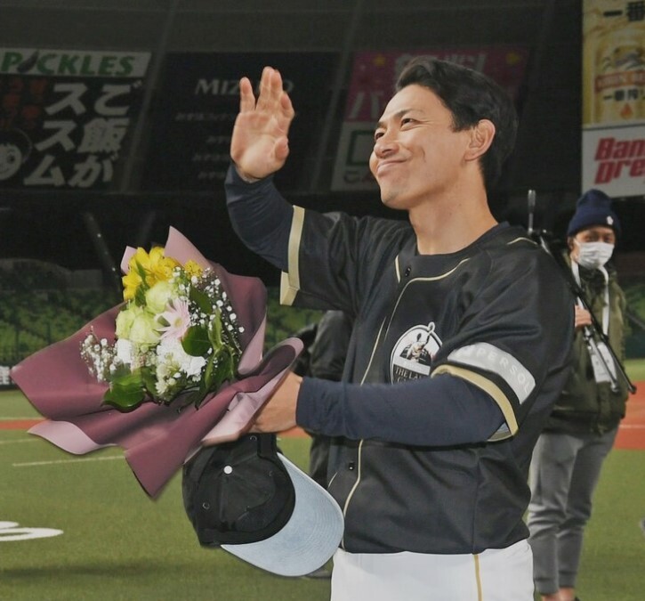 プロ野球引退選手のセレモニーを兼ねた同試合には31選手が出場。「WEST DREAMS」で出場した伊藤は第1打席に右翼線二塁打を放つと、7点を追う6回の第2打席、右翼スタンドでホームラン。笑顔でダイヤモンドを一周した。
