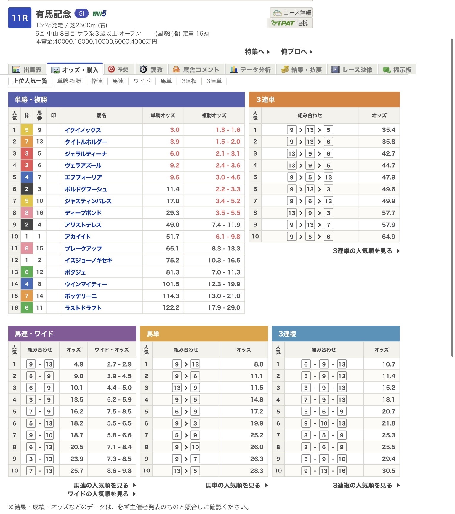 【朗報】有馬記念の複勝タイトルホルダーに賭けるだけでノーリスクで金が1.5倍になります