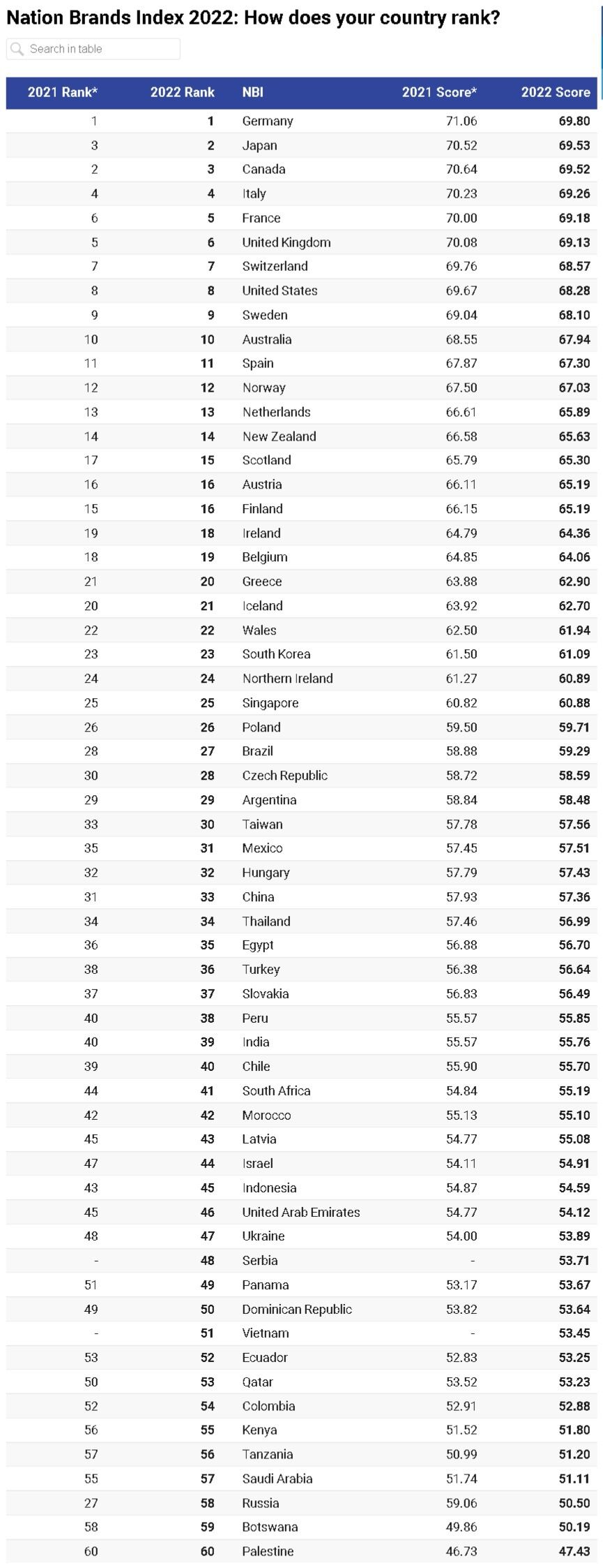 Nation Brands Index 2022: How does your country rank?