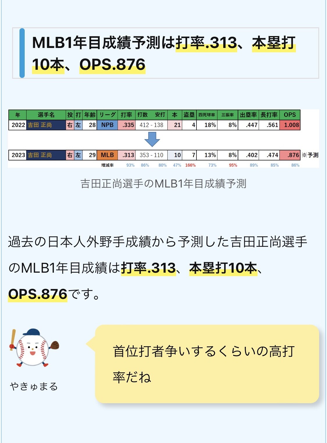 【画像】野球サイトの吉田正尚1年目予想wwwwwwwww
